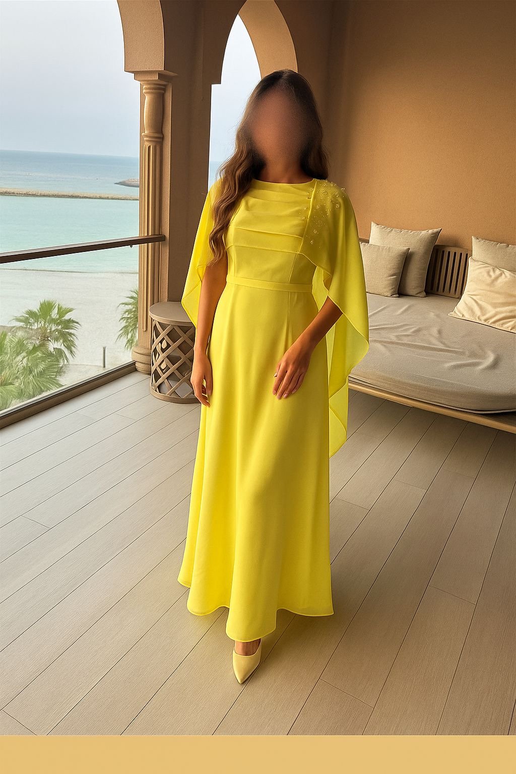 تألقي بإطلالة مفعمة بالحيوية مع هذا الفستان الأصفر الراقي. يتميز بتصميم أنثوي ناعم وأنيق مع أكمام كاب شفافة تضفي لمسة من الانسيابية والرقي. الخامة الخفيفة تمنحك راحة وأناقة في آنٍ واحد، بينما يضفي التطريز الناعم على الكتف لمسة فاخرة تبرز جمال التصميم. قصّة الفستان الانسيابية مثالية لمختلف المناسبات، من الحفلات النهارية إلى الأمسيات الفاخرة.